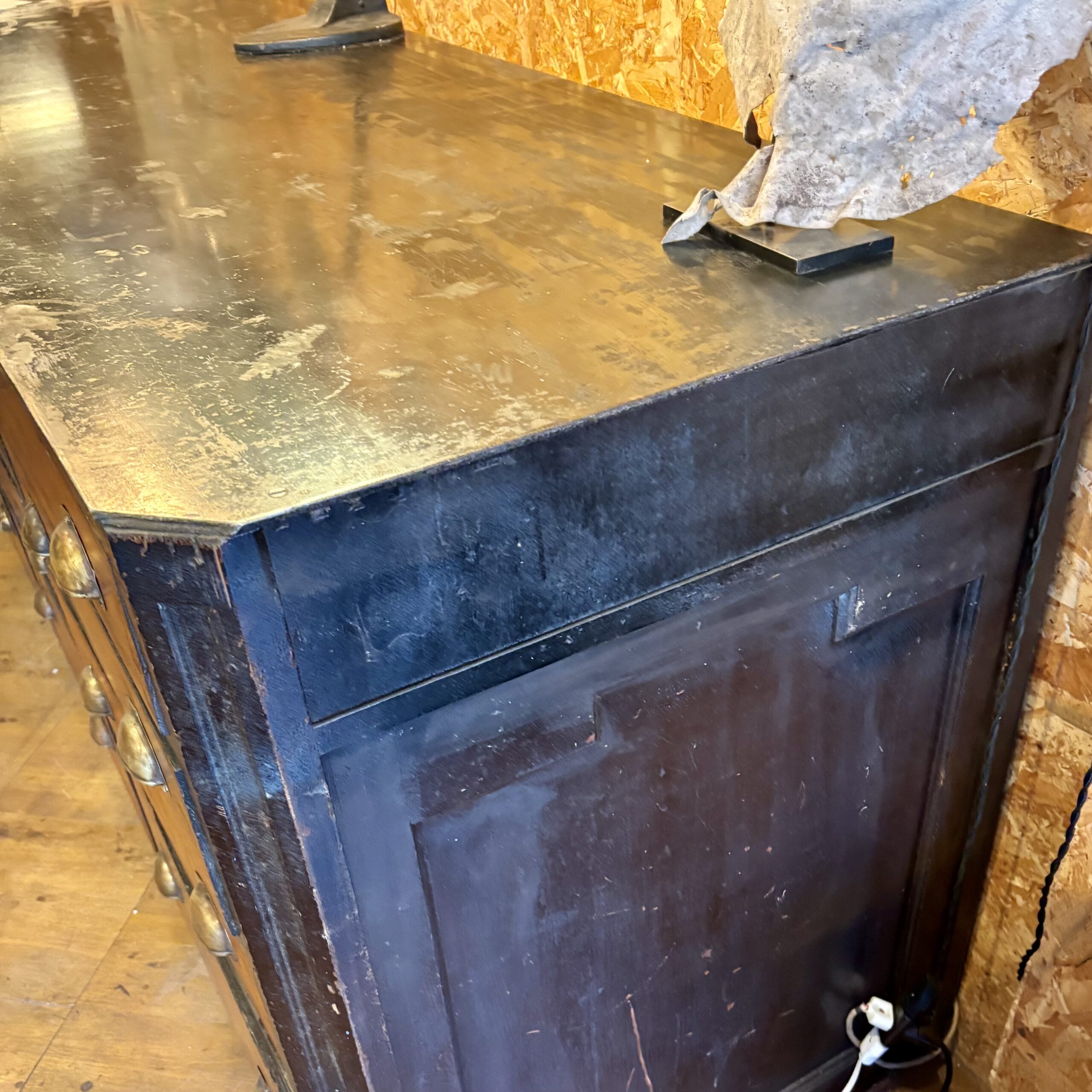 Robust and practical, this piece was originally designed for professional or workshop use, combining generous storage with a solid, worn surface that bears the marks of time.