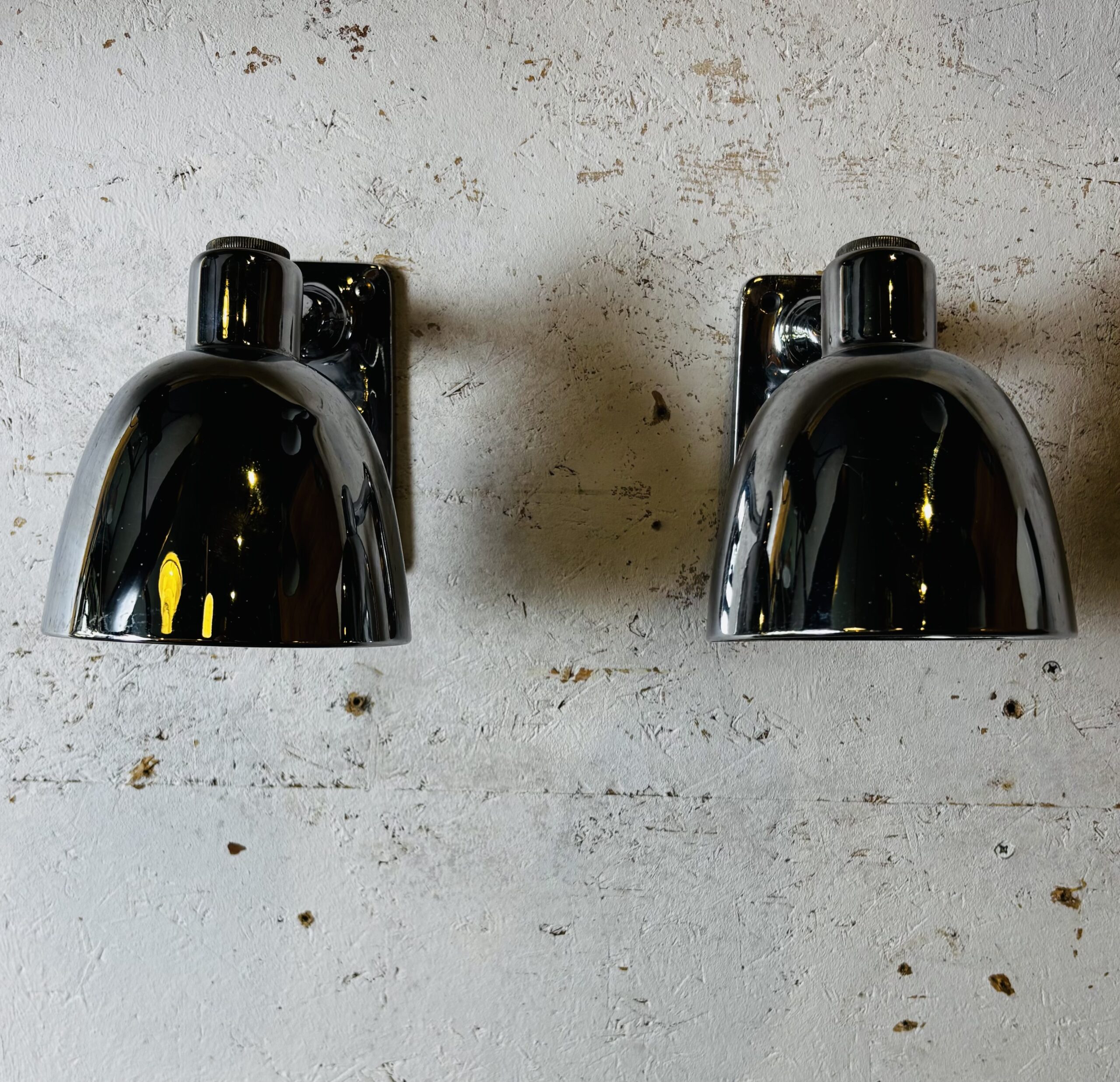 Those lamps were designed in the late 30’s for train carriages, made out of cast brass, nickel platted then chrome platted.